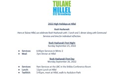 Join Tulane Hillel as we celebrate the High Holidays together as a community. We will be hosting Rosh Hashanah services as well as Yom Kippur services with meals catered by Rimon. We hope to see you there and celebrate together!